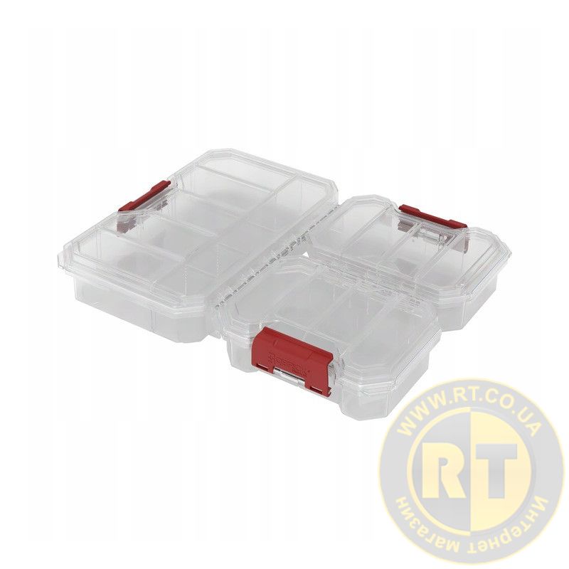 Завдяки цим особливостям органайзер ідеально підходить як для майстерні, так і для будівельного майданчика. Вам не потрібно турбуватися про суворі умови – вміст залишається добре захищеним.