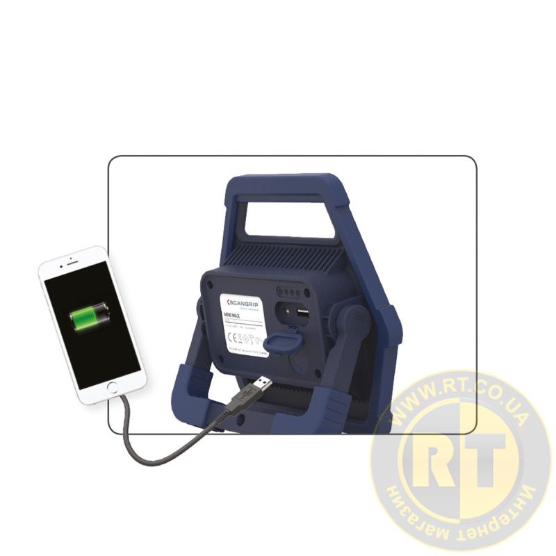 Завдяки гнучкій ручці MINI MAX можна встановлювати в різних положеннях для досягнення бажаного кута освітлення. Ручка також обладнана отвором для настінного кріплення. MINI MAX також оснащений вбудованим акумулятором із USB-роз'ємом для заряджання мобільних пристроїв.