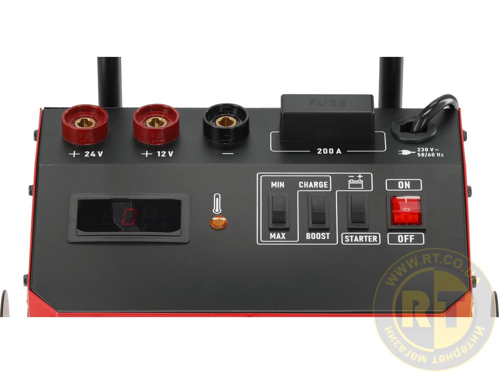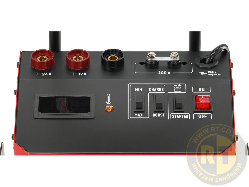 Зарядний пристрій призначений для заряджання та запуску свинцево-кислотних акумуляторів у легкових автомобілях, фургонах для доставки та обладнання майстерень.