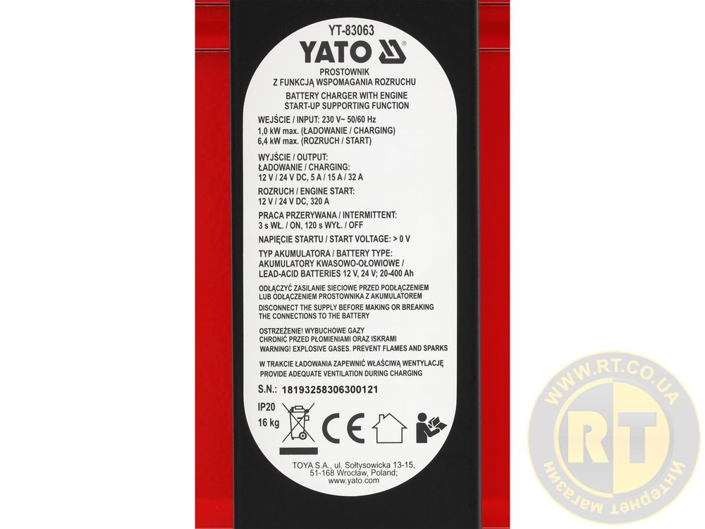 Пуско-зарядний пристрій YATO YT-83063