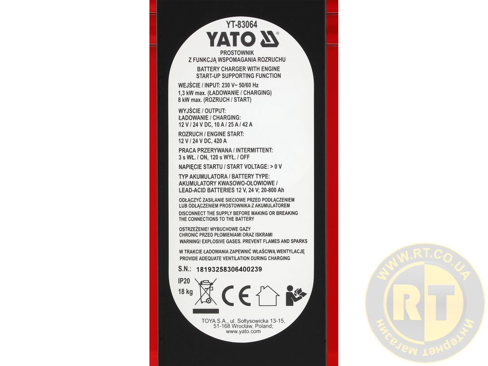 • Пуско-зарядний пристрій YATO YT-83064