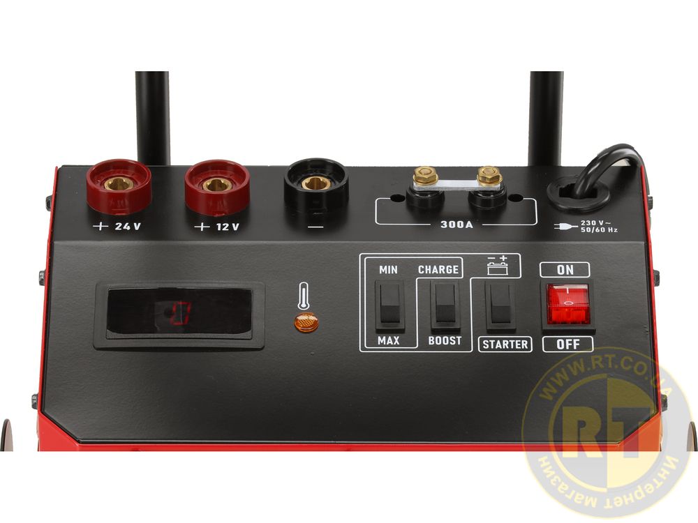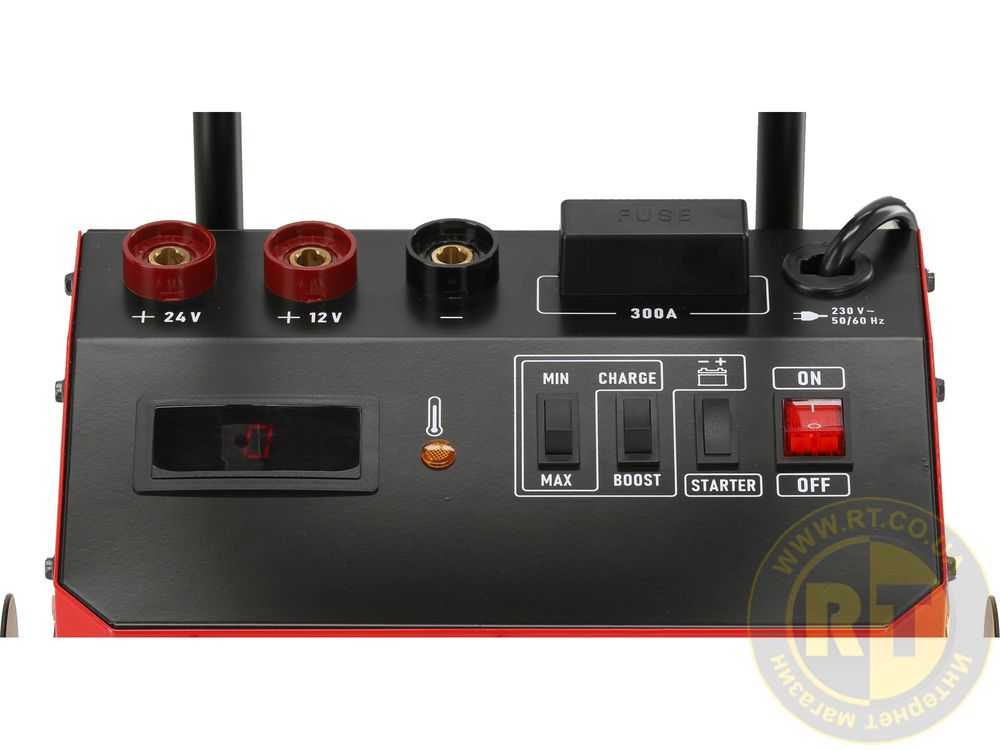 Зарядний пристрій призначений для заряджання та запуску свинцево-кислотних акумуляторів у легкових автомобілях, фургонах доставки та майстернях.