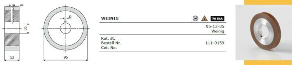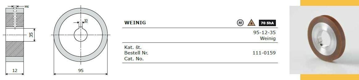 Ролик гумовий D=95 F=35 I=12 клин 10 мм корпус ALU 70 ShA WEINIG ELASTOMERI WEG.095035012.WBA