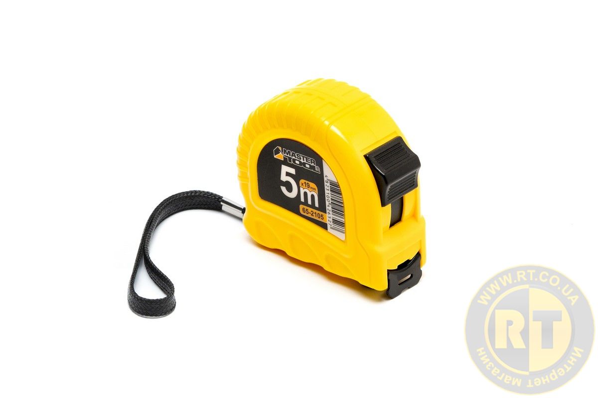 Рулетка 5 м х 19 мм фіксатор полотна кнопка STOP протиковзкий гачок MASTERTOOL 65-2105