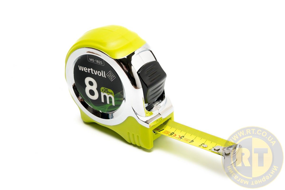 Рулетка 8 м х 25 мм фіксатор полотна кнопка STOP покриття TPR нейлонове покриття протиковзкий гачок MASTERTOOL MS-1825