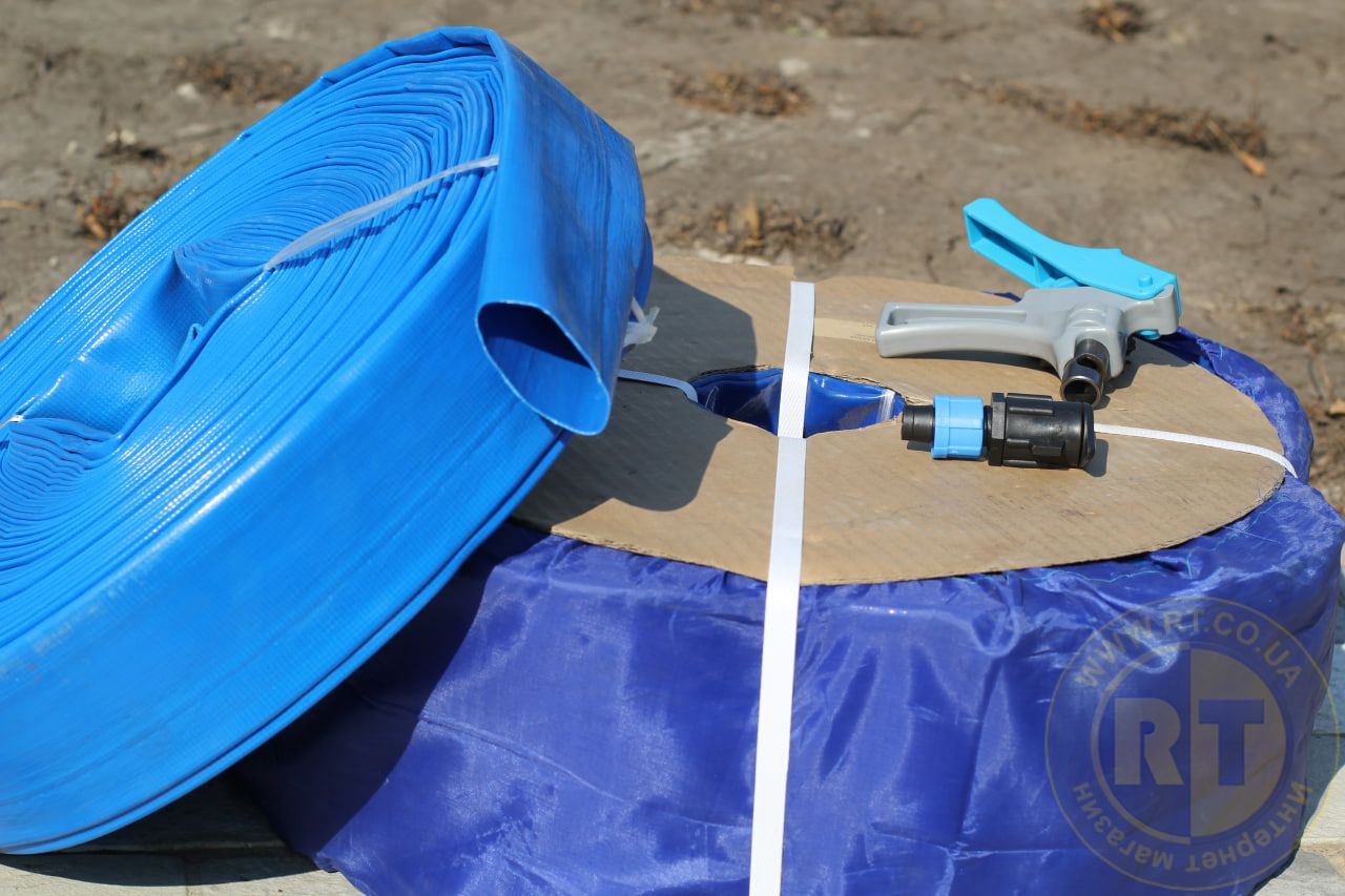 Гнучкий шланг LFT (PRM-75) діаметром 76 мм (3") мм завдовжки 50 метрів виготовляється з первичного якісного ПВХ з додатковим сітчастим армуванням із синтетичного корду між зовнішньою та внутрішнім шаром. випромінювання, органічних та неорганічних удобрень та підживлень. шланг під час проведення польових робіт.
