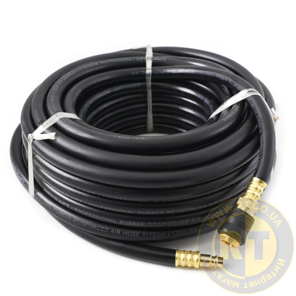 Шланг гумовий армований повітряний (PROFI) 20 атм 10x17мм, 15м з латунними швидкороз'ємними з'єднаннями AIRKRAFT AHC-16-J