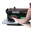 . від 0° до 90° Робочий стіл шліфувального верстата може бути розташований на стрічковому і дисковому блоках, має регульований нахил і Т-подібний паз для фіксації кутового упору Кутовий упор регулюється і дозволяє розташувати заготовку під кутом від 0° до 45° шліфування передбачений спеціальний патрубок для підключення зовнішньої аспіраційної системи Комплектація: Верстат Holzstar BTS 151 Гарантійний талон Упаковка