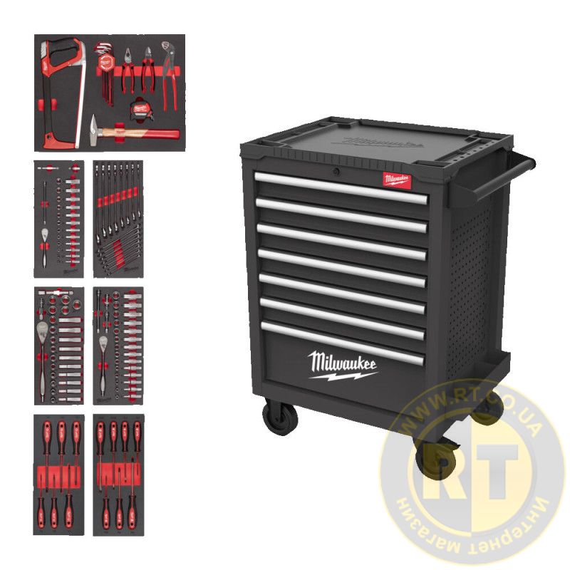 Візок інструментальний MILWAUKEE, SRC27/7-1, 27''/69см, 7 полиць, з комплектом інструменту, (131шт)