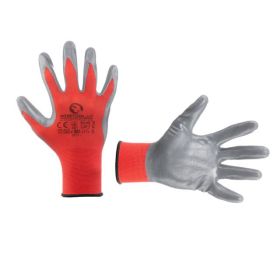 Рукавичка трикотажна з покриттям з сірого нітрилу на долоні, синтетична, червона, 10" INTERTOOL SP-0124