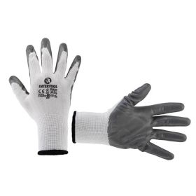 Рукавичка трикотажна з сірим нітриловим покриттям долоні, синтетична, біла, 10" INTERTOOL SP-0112