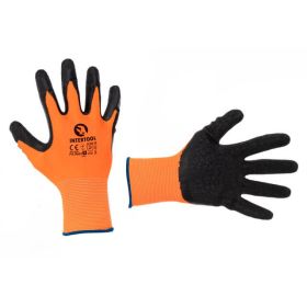 Рукавичка трикотажна з 3/4 покриттям з синього спіненого латексу, синтетична, посилена, покриття пальців: чорний зморшкуватий латекс, 10" INTERTOOL SP-0107