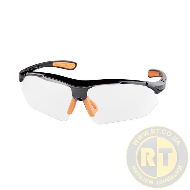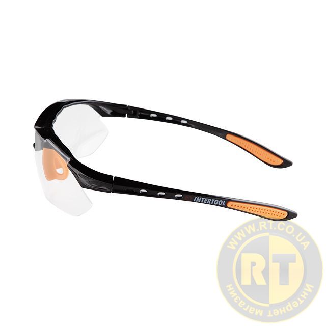 Окуляри захисні, прозорі, лінзи полікарбонат, заушники чорні нейлонові, гумова накладка на ніс, захист від удару INTERTOOL SP-0092