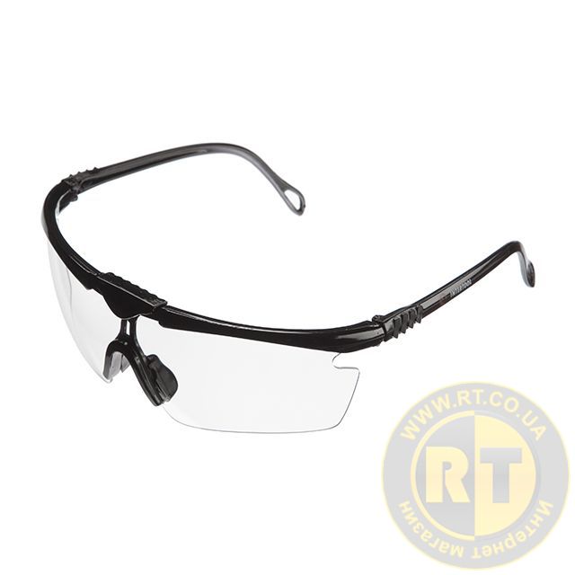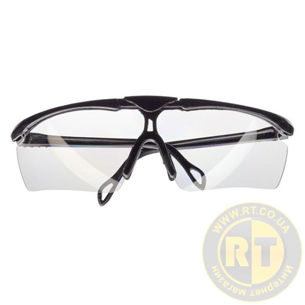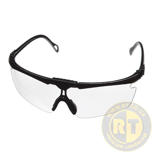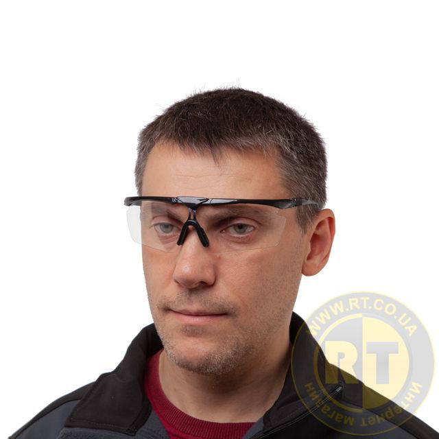 Окуляри забезпечують чітку видимість. Прозорі лінзи з полікарбонату мають широкий панорамний огляд. Ергономічна чорна оправа не викликає дискомфорту, завдяки носоупорам та округлій формі гарантує зручну посадку окулярів на обличчі.