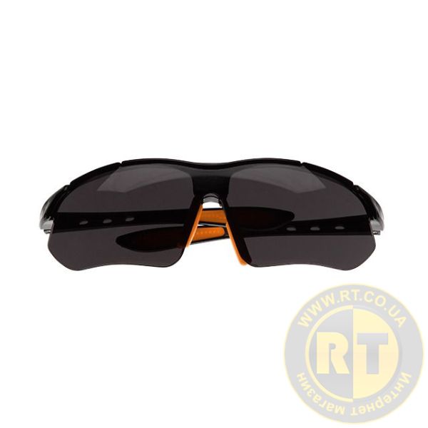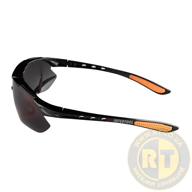 Окуляри захисні, затемнені, лінзи полікарбонат, заушники чорні нейлонові, гумова накладка на ніс, захист від удару INTERTOOL SP-0094