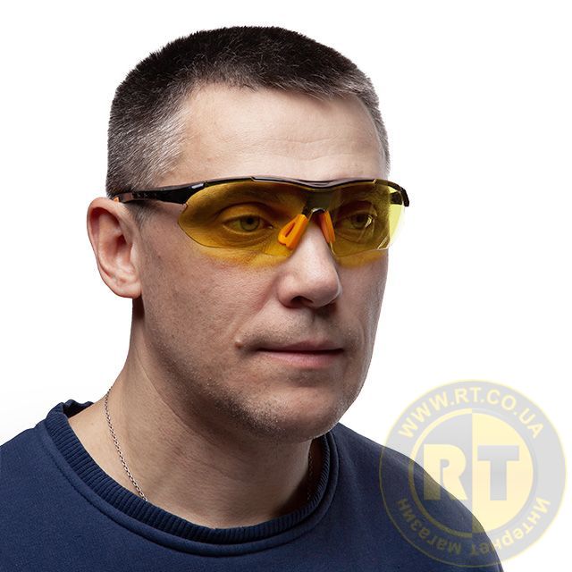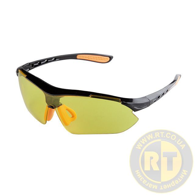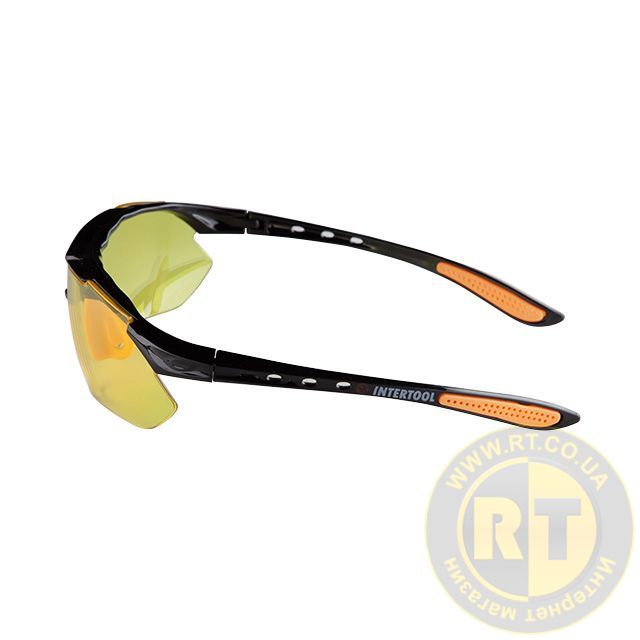 Окуляри захисні, жовті, лінзи полікарбонат, заушники чорні нейлонові, гумова накладка на ніс, захист від удару INTERTOOL SP-0093