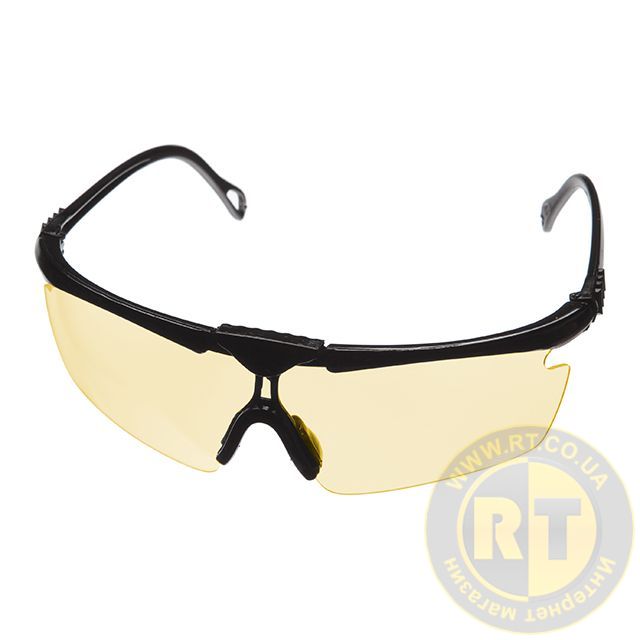 Окуляри захисні, жовті, лінзи полікарбонат, заушники полікарбонат чорні, протиударні, оптичний клас 3 INTERTOOL SP-0091
