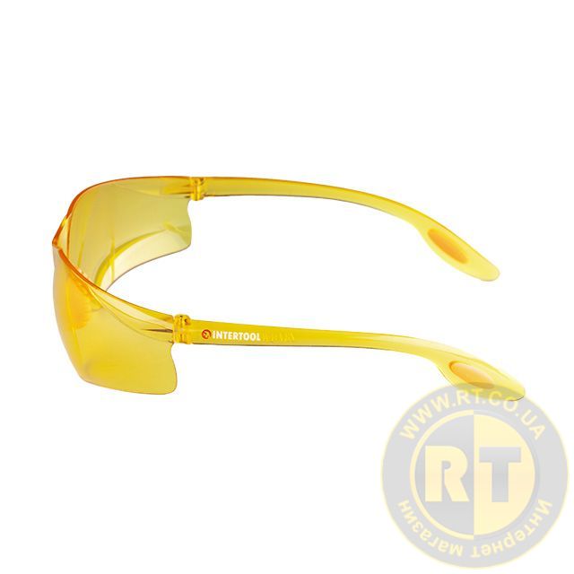 Окуляри захисні, жовті, лінзи полікарбонат, заушники полікарбонат, захист від удару INTERTOOL SP-0086