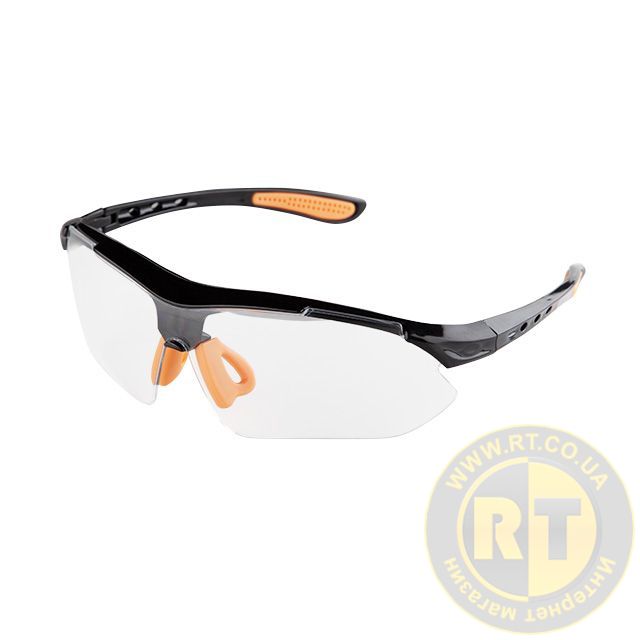 Окуляри захисні, прозорі, лінзи полікарбонат, заушники чорні нейлонові, гумова накладка на ніс, захист від удару INTERTOOL SP-0092