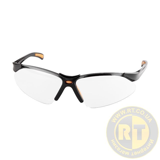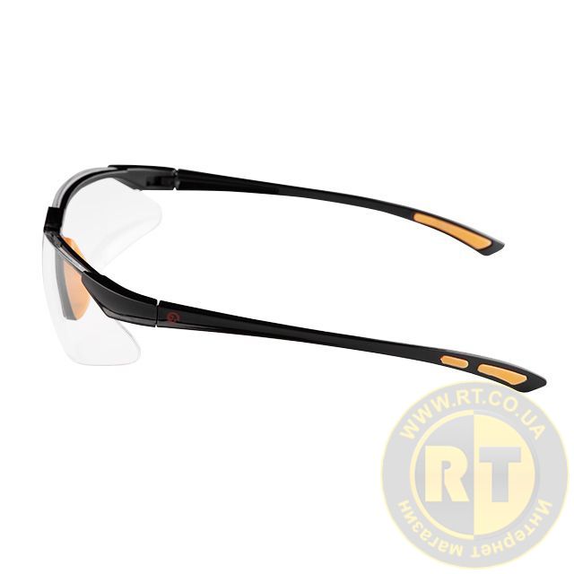 Окуляри захисні, прозорі, лінзи полікарбонат, заушники чорні нейлонові, гумова накладка на ніс, захист від удару INTERTOOL SP-0095