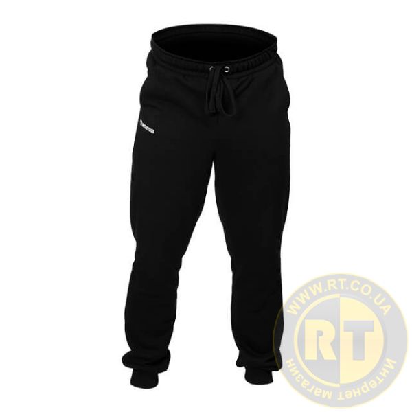 Штани базової моделі з брендуванням, для повсякденного використання. Мають вільний крій з боковими кишенями і поясом на резинці зі шнурком для додаткової фіксації. Штани зручні і не сковують рухів. Виготовлені з натурального трикотажу, гіпоалергенні, в них комфортно протягом всього робочого дня. Низ брюк доповнюється резинкою, що слугує декором і добре захищає від холоду.