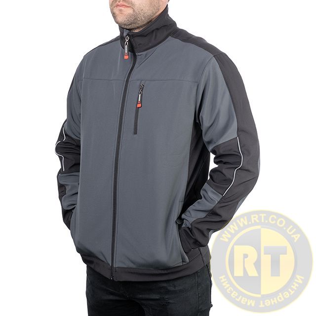 Куртка SOFTSHELL темно-сіро/чорна, тришарова, стрейч 300 GSM 100D, водо-/вітрозахист, 96% поліестер / 4% еластан, 3 кишені, S INTERTOOL SP-3131