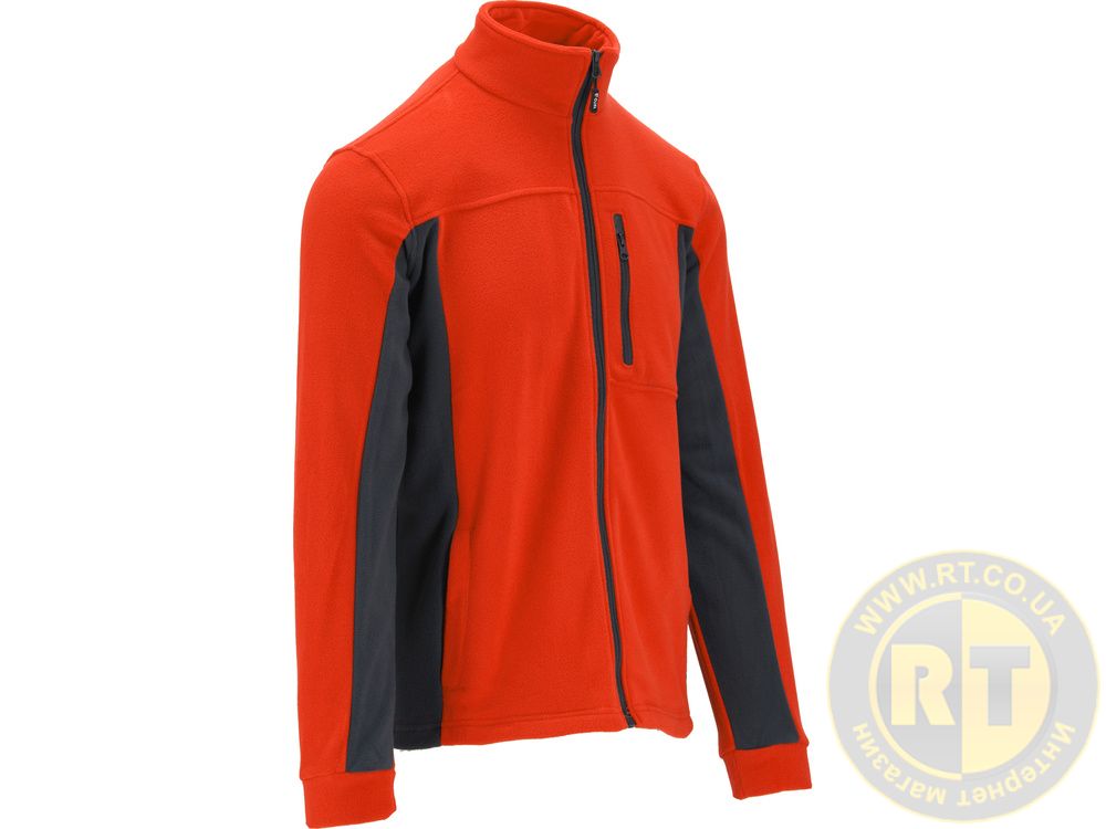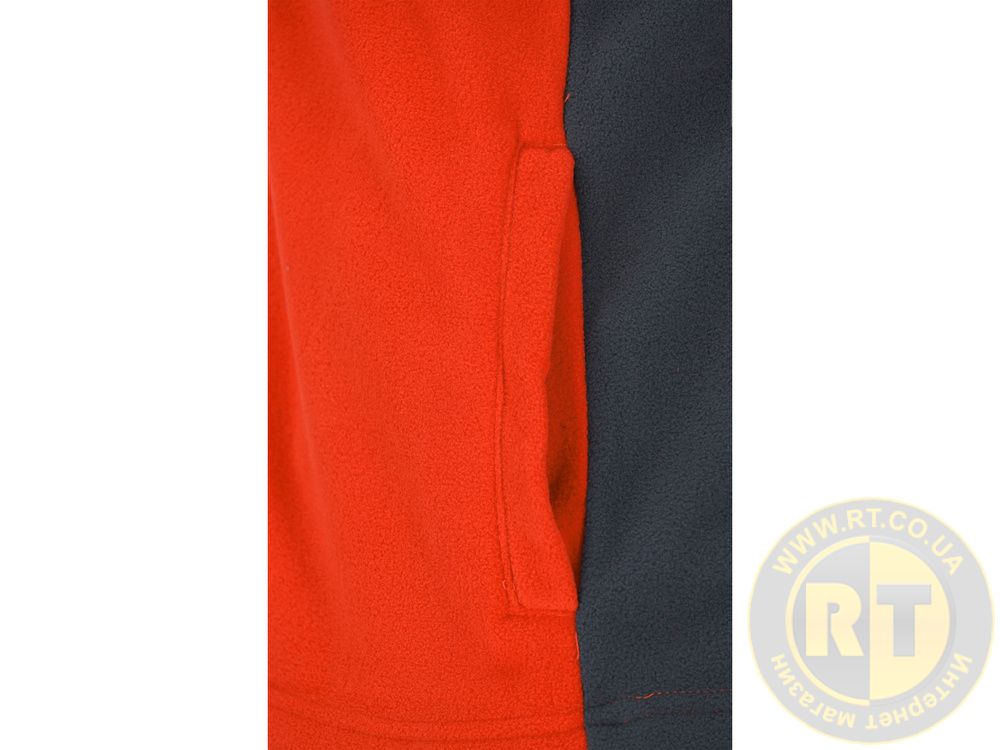 Флісова куртка у двоцільовому дизайні з трьома кишенями, одна з яких прикріплена до блискавки. Основним матеріалом є сильний поліестер із характерною флісовою структурою, яка ефективно зберігає тепло, особливо у холодні дні.
