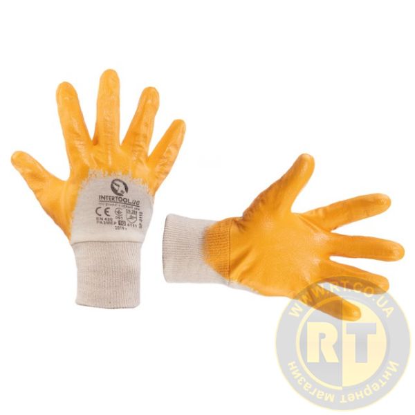 Рукавичка трикотажна бавовняна з 3/4 покриттям з нітрилу, 10", жовта INTERTOOL SP-0110