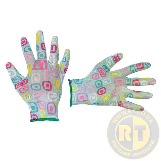 Рукавичка садова з покриттям з нітрилу, блакитна, 8" INTERTOOL SP-0164