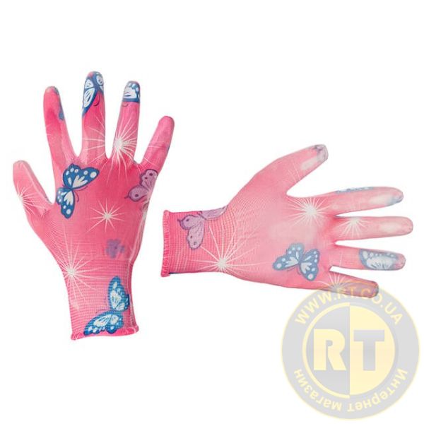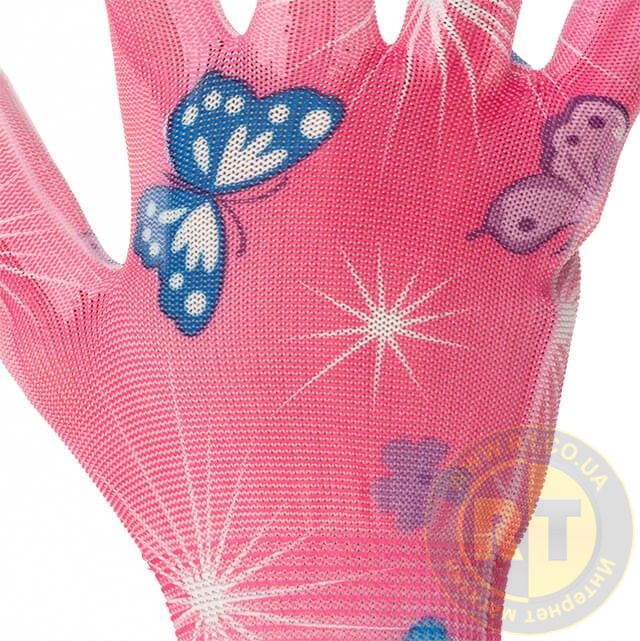 Рукавичка садова з покриттям з нітрилу, рожева, 8" INTERTOOL SP-0162