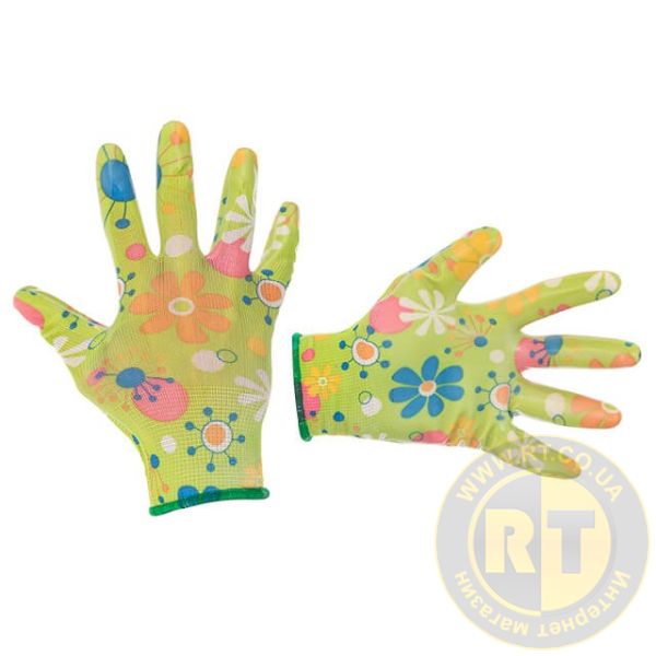Рукавичка садова з покриттям з нітрилу, зелена, 8" INTERTOOL SP-0163