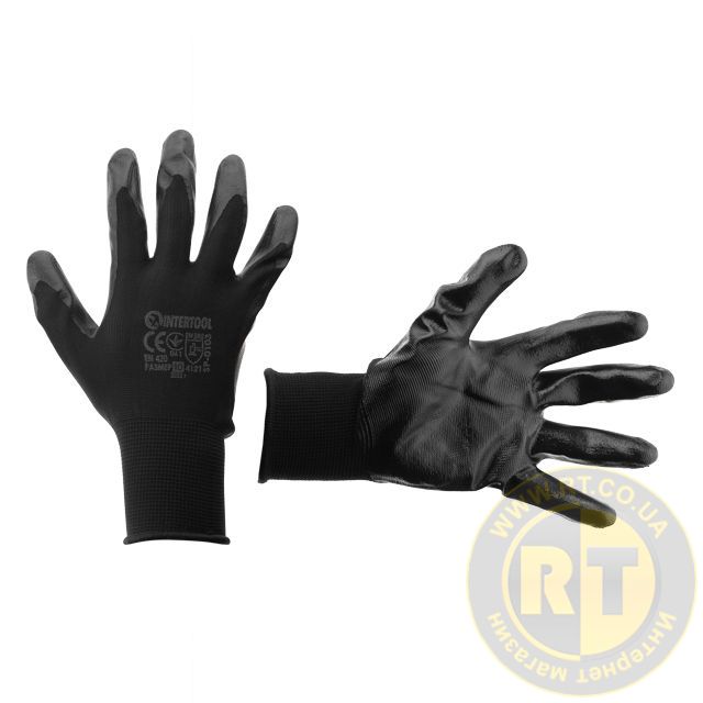 Рукавичка садова трикотажна з чорним нітриловим покриттям, синтетична, 10" INTERTOOL SP-0103
