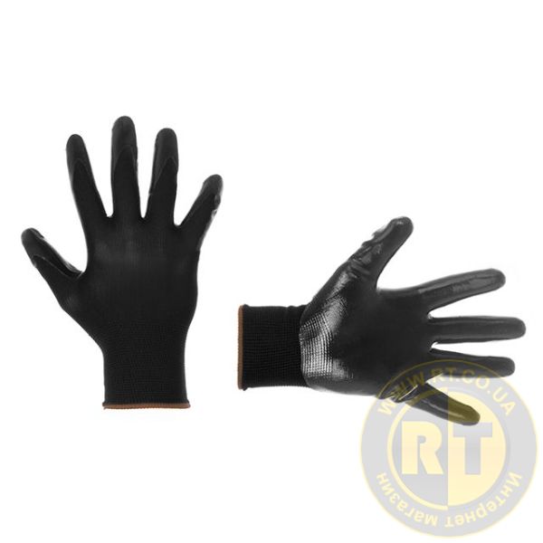 Рукавичка садова трикотажна з чорним нітриловим покриттям, синтетична, 7" INTERTOOL SP-0100