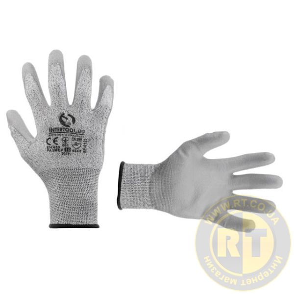 Рукавичка трикотажна порізостійка з покриттям з поліуретану на долоні, сіра, 10" INTERTOOL SP-0123