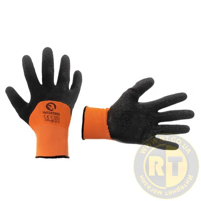 Рукавичка трикотажна з 3/4 покриттям з чорного спіненого латексу, синтетична, посилена, 10" INTERTOOL SP-0117