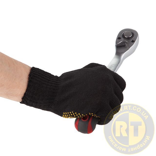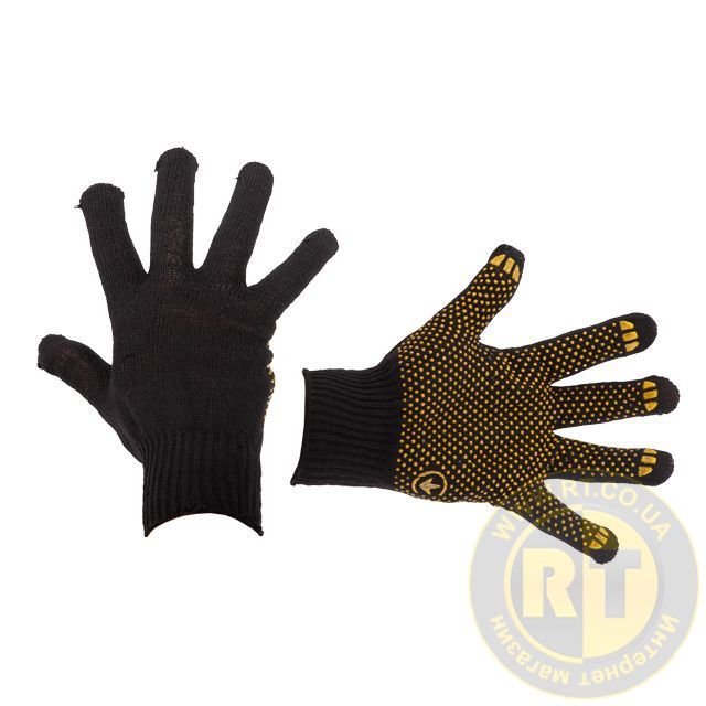 Рукавичка трикотажна, жовті ПВХ крапки, 60% бавовна / 40% поліестер, 10", клас в’язки 7, чорна, 38 г INTERTOOL SP-0138