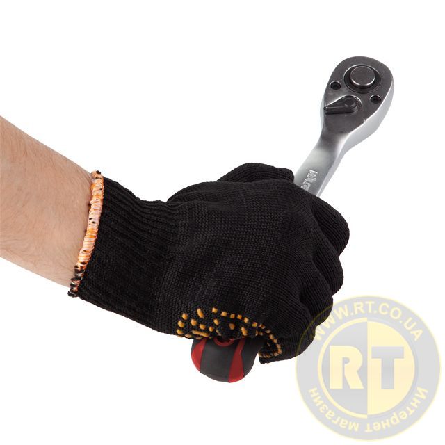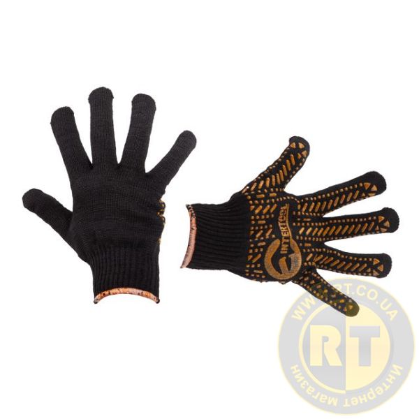 Рукавичка трикотажна, жовті ПВХ крапки, 60% бавовна / 40% поліестер, 10", клас в’язки 7, чорна, 62 г INTERTOOL SP-0136