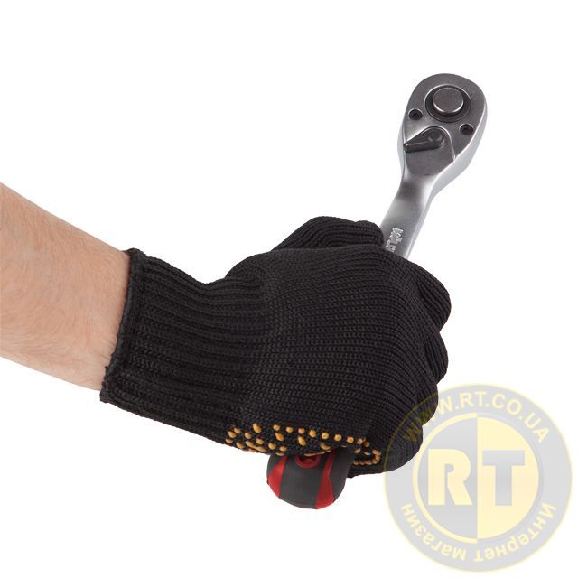 Рукавичка трикотажна, жовті ПВХ крапки, 60% бавовна / 40% поліестер, 10", клас в’язки 7, чорна, 90 г INTERTOOL SP-0128