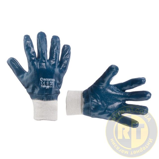 Рукавичка захисна на трикотажній основі з повним нітриловим покриттям, 10,5", маслостійка, синя INTERTOOL SP-0137