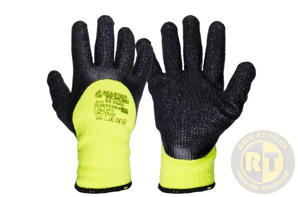 Рукавички акрилові утеплені з зморшкуватим латексним покриттям 11" 12 пар неоново-чорні MASTERTOOL 83-0606doz