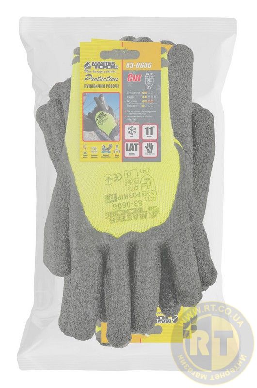 Рукавички акрилові утеплені з зморшкуватим латексним покриттям 11" 12 пар неоново-чорні MASTERTOOL 83-0606doz