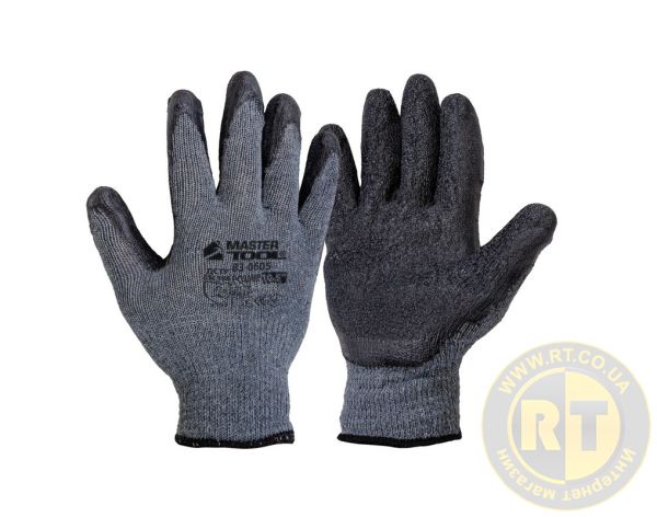 Рукавички бавовняні утеплені CRINKLE LATEX COTTON латексне покриття долоні 10.5" 12 пар сіро-чорні MASTERTOOL 83-0605doz