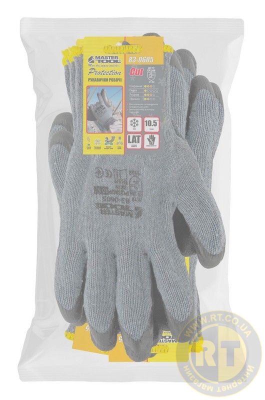 Рукавички бавовняні утеплені CRINKLE LATEX COTTON латексне покриття долоні 10.5" 12 пар сіро-чорні MASTERTOOL 83-0605doz
