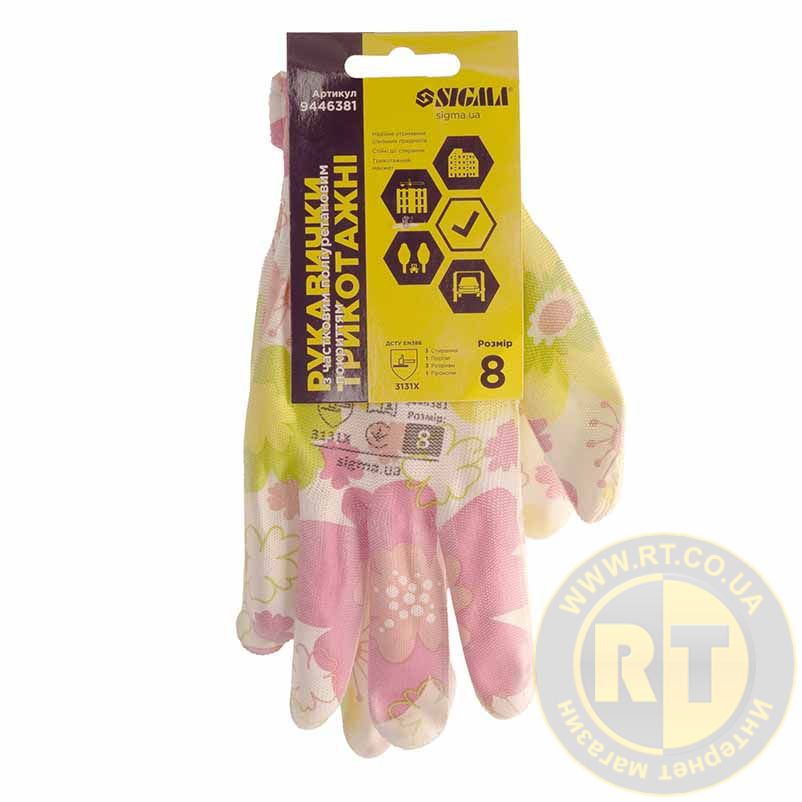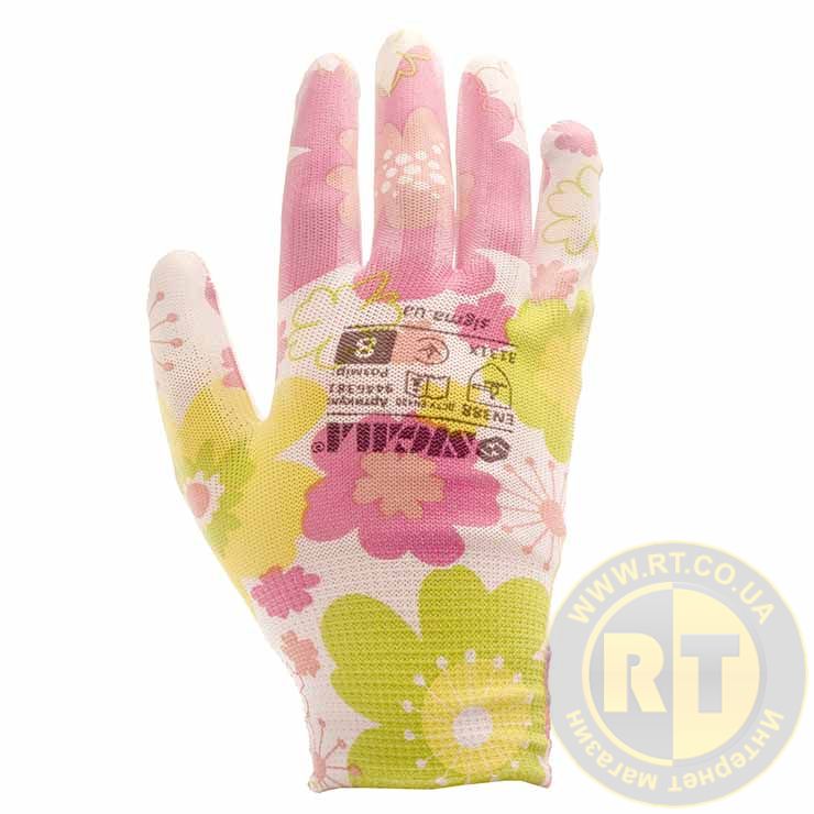 Рукавички із ПУ покриттям (білі, манжет) SIGMA (9446381) для захисту рук від механічних впливів.