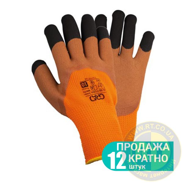 Рукавички трикотажні з частковим спіненим латексним покриттям утеплені р10 (коричневий манжет) КРАТНО 12 парам GRAD (9445715)
