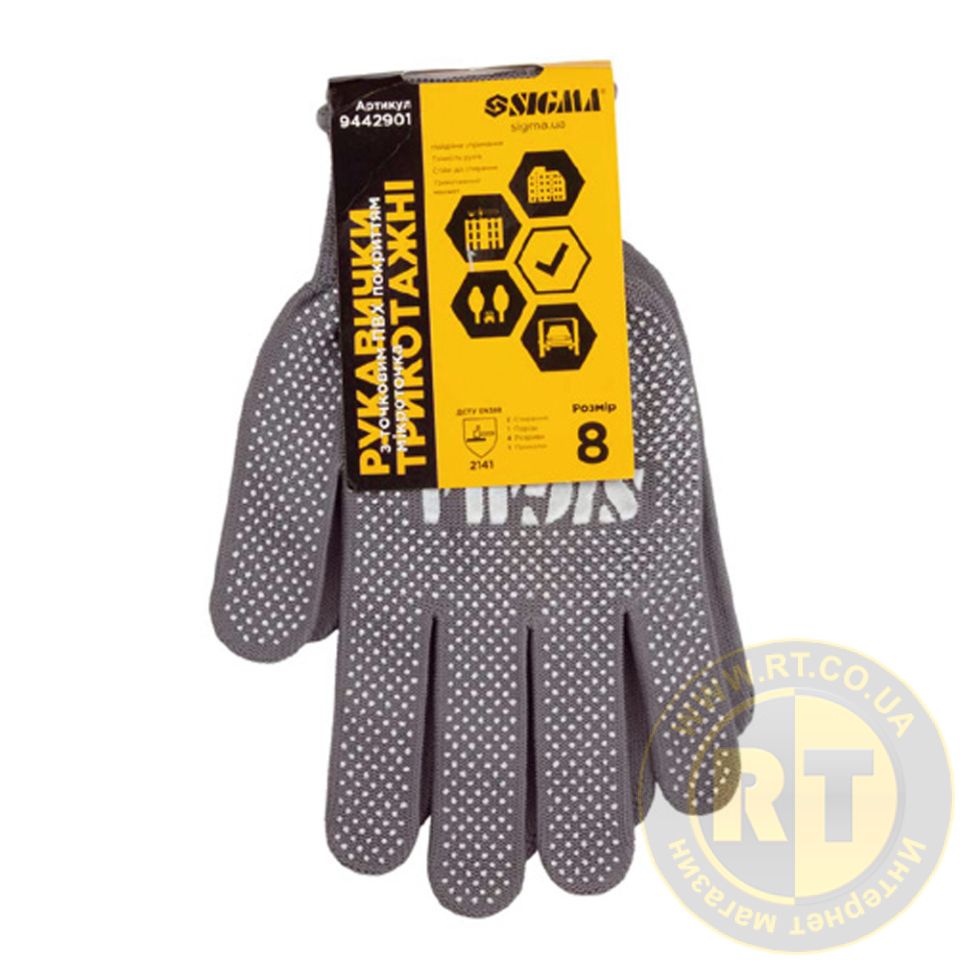 Рукавички трикотажні з точковим ПВХ покриттям р8 Мікроточка (сірі) SIGMA (9442901)