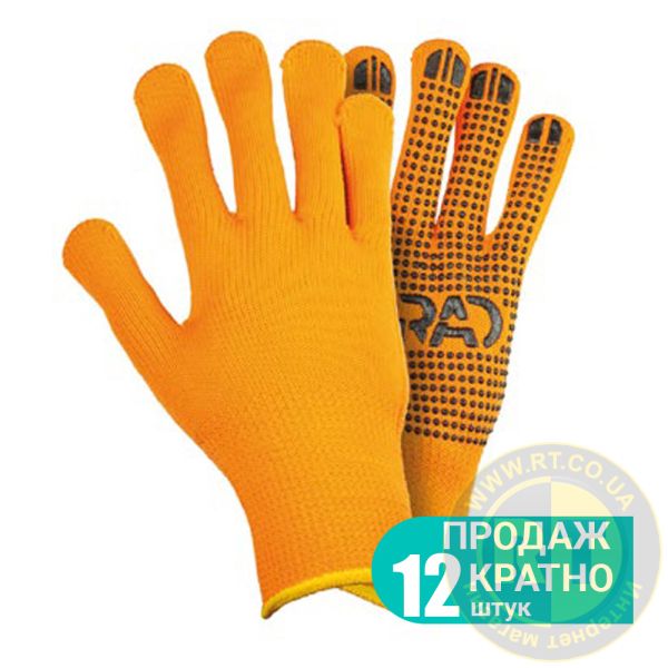 Рукавички трикотажні з точковим покриттям ПВХ утеплені р10 (помаранчеві) КРАТНО 12 парам GRAD 9442375