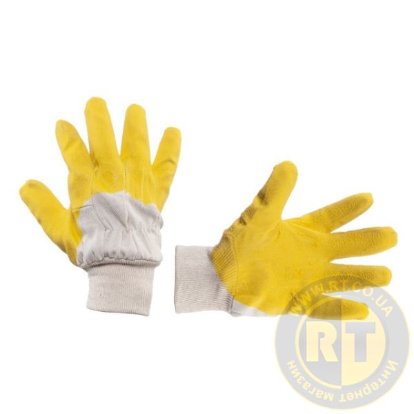 Рукавичка скляра на трикотажній основі з покриттям 3/4 з рифленого латексу, 10,5", жовта INTERTOOL SP-0002