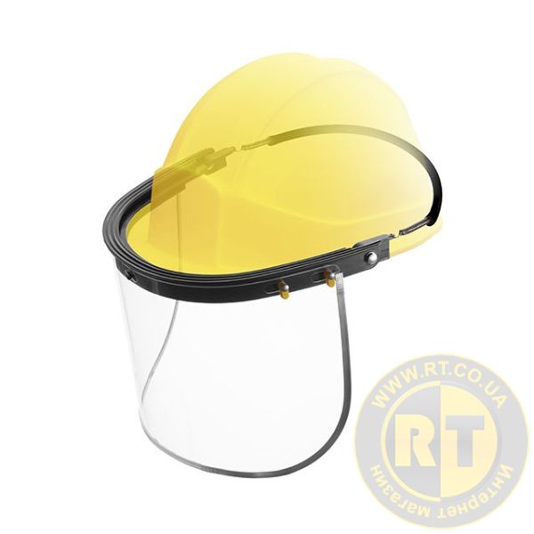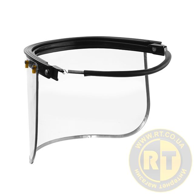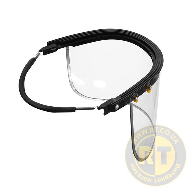 Сам прозорий екран може зніматися, він кріпиться за допомогою замків до основи, у випадку зношуваня його можна легко замінити на новий. Алюмінієва окантовка по краю щитка надає міцності та зносостійкості конструкції. Передня ергономічна частина наголовника для комфортної роботи під час тривалого використання.