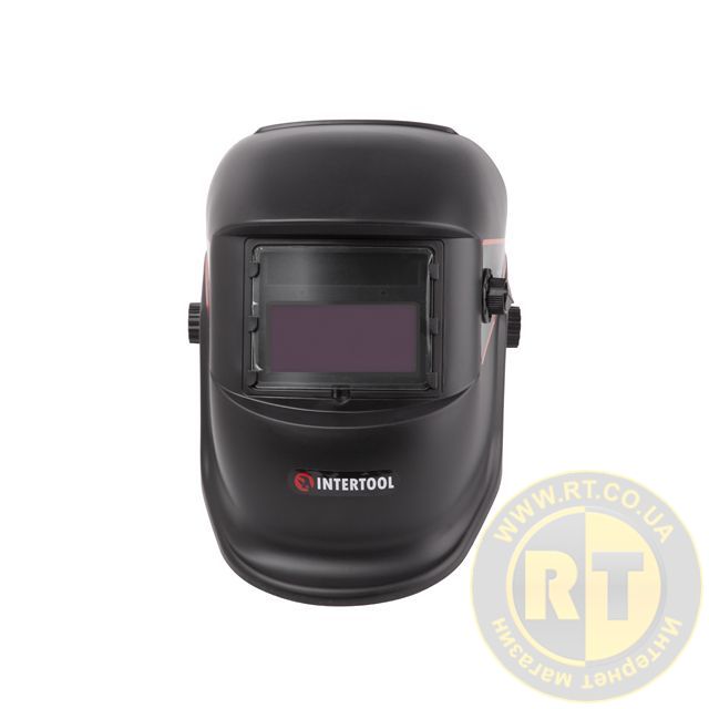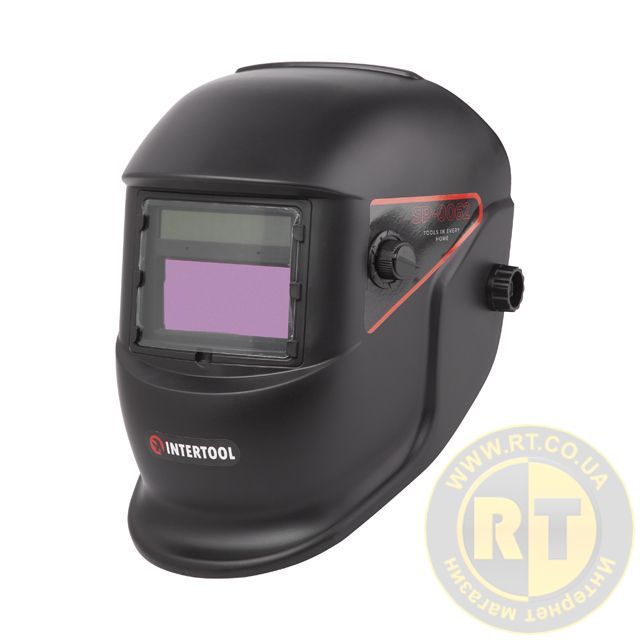 Маска зварювальника "Хамелеон", плавне регулювання затемнення, клас світлофільтру 1/2/1/2, 2 сенсора, DIN 9-13, 1/25000 с, вікно 93×43 мм, РР INTERTOOL SP-0062